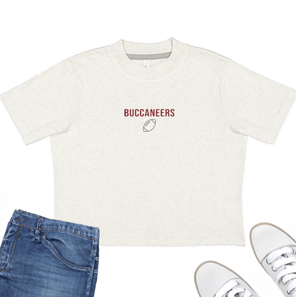Show your team pride with the Buccaneers Crop, perfect for staying cool and stylish while cheering on Tampa Bay. This comfortable crop top fits snugly, making it easy to layer or wear alone for game day or casual outings. Support your favorite team in style and comfort wherever you go.