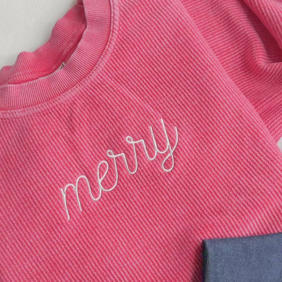 MERRY EMBROIDERED RIBBED SWEATSHIRT